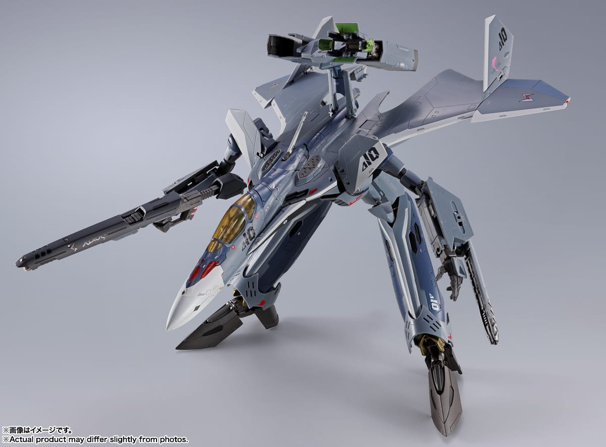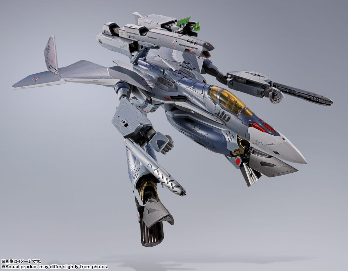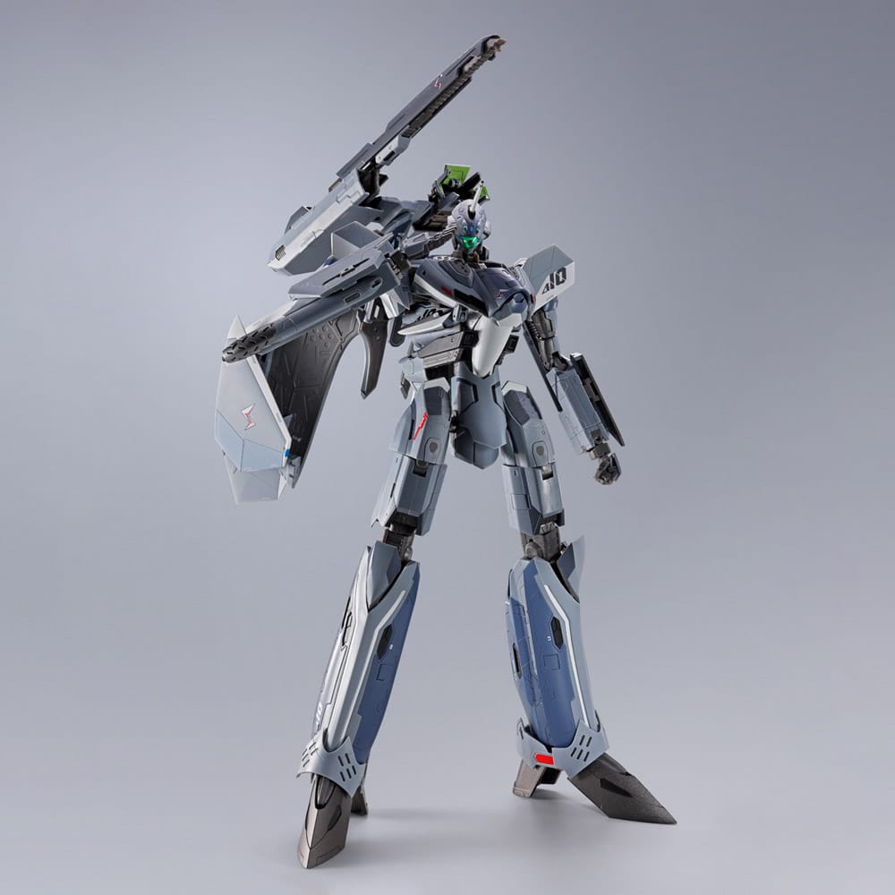 El VF-171EX ARMOURED NIGHTMARE PLUS EX de ALTO SAOTOME ¡se reincorpora a la serie DX CHOGOKIN! Luce tal como cuando es pilotado por Saotome Alto en la segunda mitad de la serie. Las partes de la armadura y la Valquiria están pintadas en colores mate para una sensación de lujo, y la armadura presenta marcas precisas. El set incluye tres pares de manos opcionales, Gunpod, Figura de piloto, base, Antena opcional, piezas de armadura y múltiples armas.